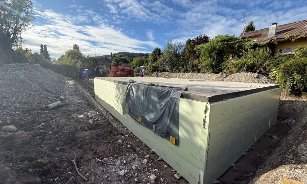 Beim Projekt Haus auf der Höri ist der Rückbau abgeschlossen: Der Bestand wurde bis auf den bestehenden Keller vollständig abgetragen. Der Keller selbst wurde ausgehoben, abgedichtet und wird aktuell gedämmt.