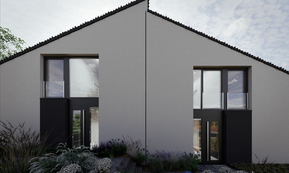 Das Projekt umfasst die Planung von zwei Doppelhaushälften mit klar strukturierter Grundrissorganisation und hoher wirtschaftlicher Effizienz. Ziel war die Entwicklung eines kompakten Wohngebäudes, das langfristige Nutzungsflexibilität bietet und unterschiedliche Lebenssituationen aufnehmen kann.